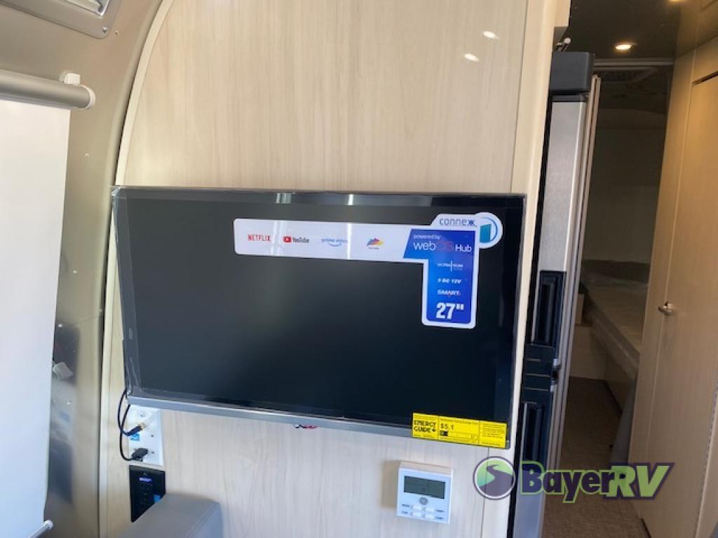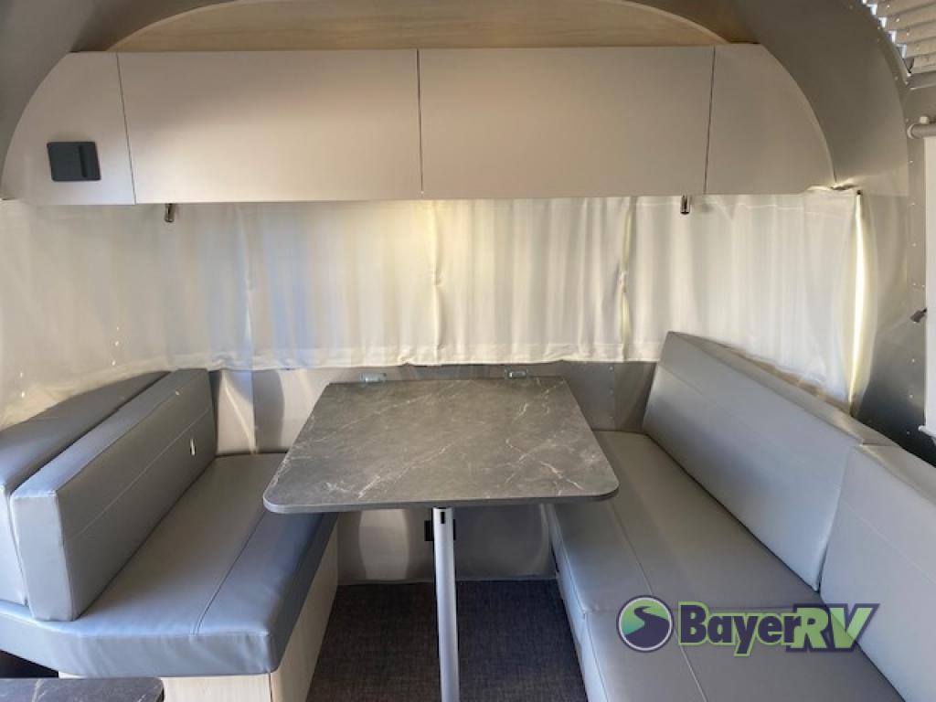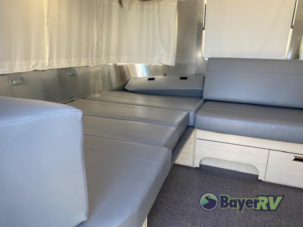 With each Flying Cloud travel trailer by Airstream, there are two axles, and each is built for ease of towing, plus there is a rear-view camera to make reversing and parking easier, and stainless steel front stone guards to protect the lower segments from road debris. The iconic Airstream design is created outside and inside by the semi-monocoque aluminum superstructure, the temperature reducing one-piece white aluminum roof, the panoramic front windows, and the stylish aluminum wheels. The interior will have you feeling right at home with handcrafted cabinetry, plenty of storage and counter space, sleek roller blinds and blackout curtains, plus residential style faucets!