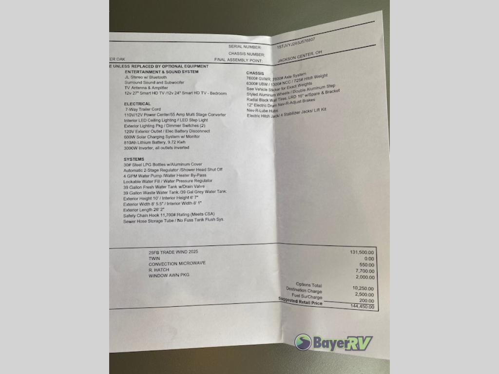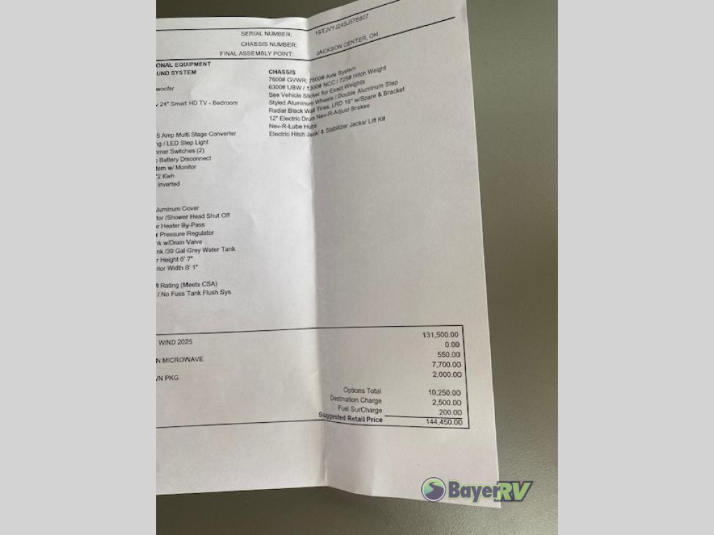 Bayer RV is not responsible for any misprints, typos, or errors found in our website pages. Any price listed excludes sales tax, registration tags, and delivery fees. Manufacturer pictures, specifications, and features may be used in place of actual units on our lot. Please contact us @800-859-9205 for availability as our inventory changes rapidly. All calculated payments are an estimate only and do not constitute a commitment that financing or a specific interest rate or term is available.