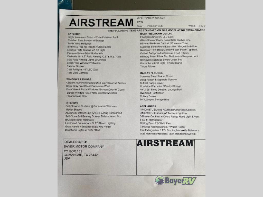 Airstream Trade Wind travel trailer 25FB Twin highlights:
