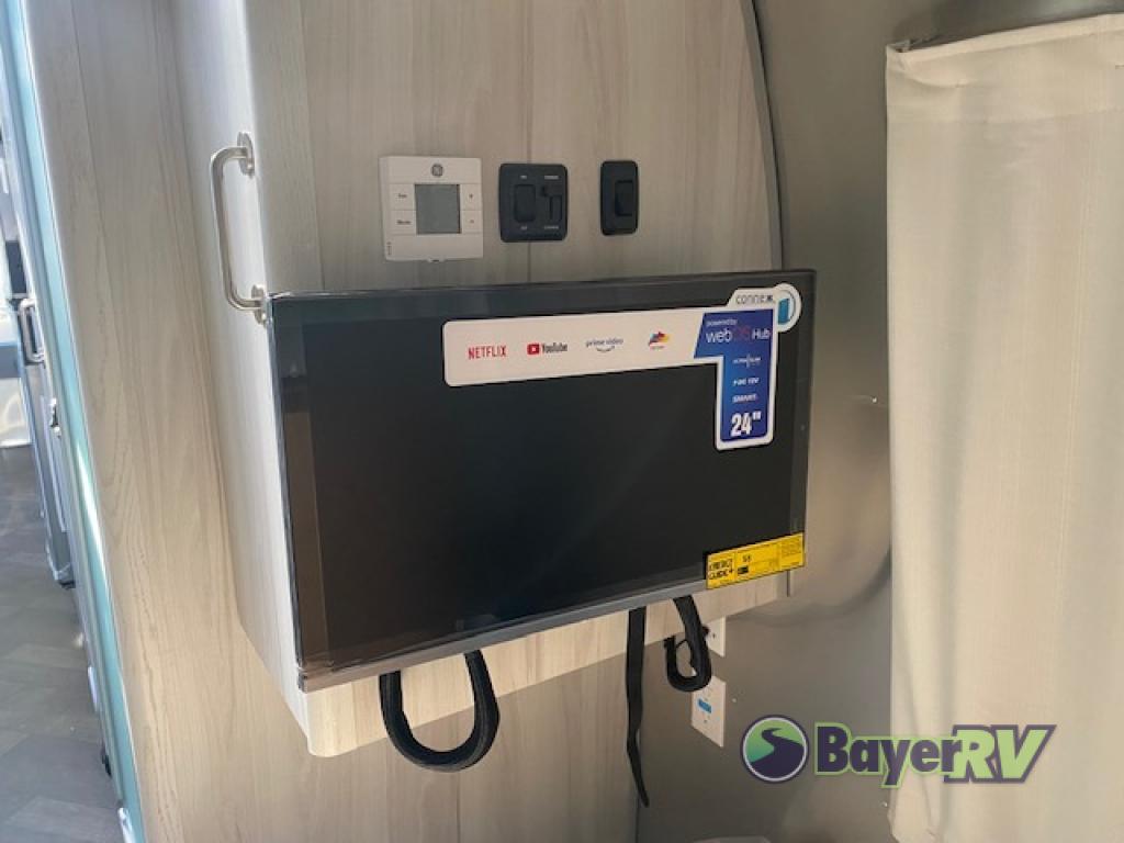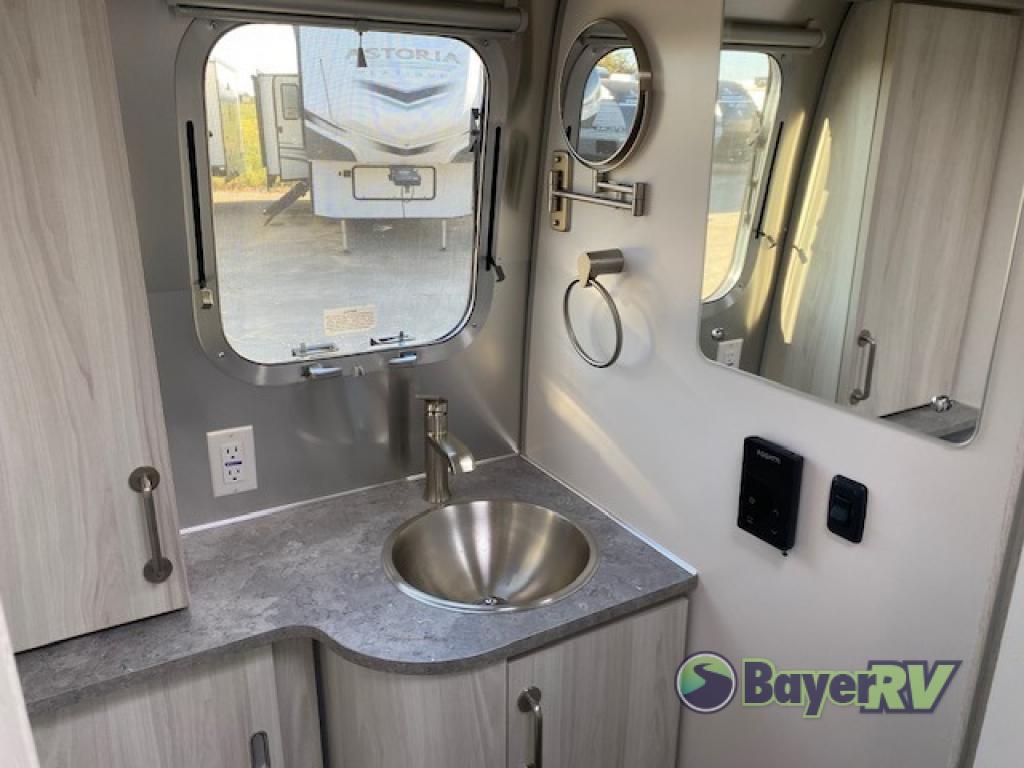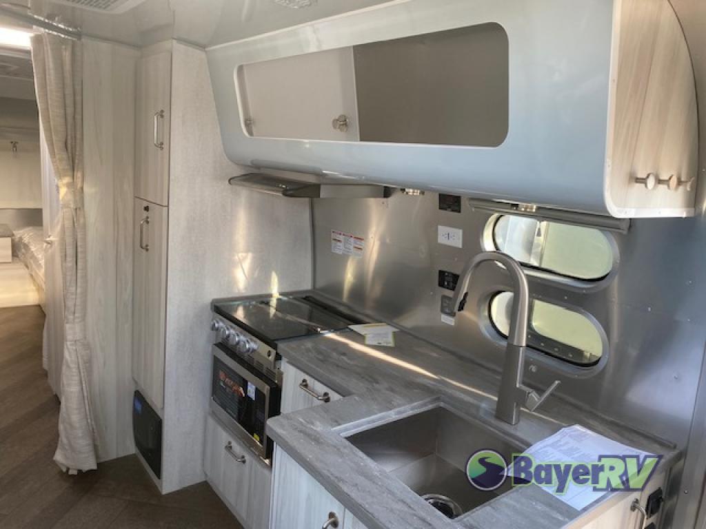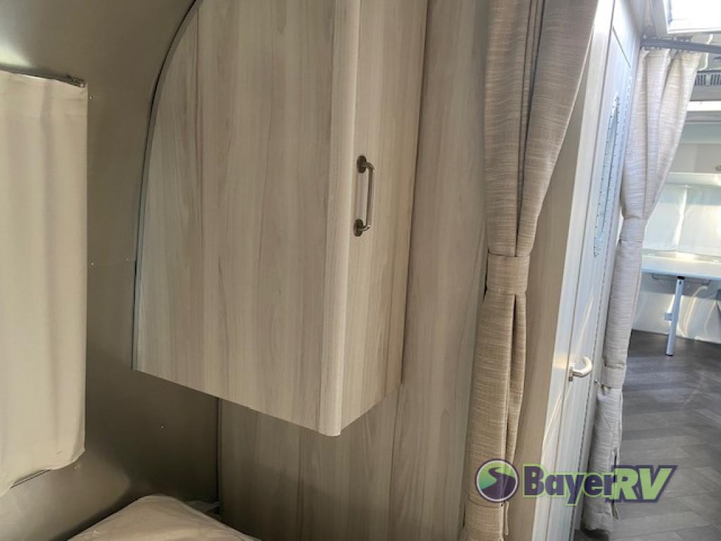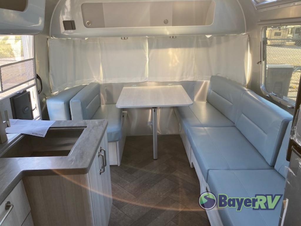 Every time you step foot into the Airstream International travel trailer, you will feel as if you are breathing in a breath of fresh air! The fresh coastal décor was inspired by the waterfront, and the stylish interior delivers a relaxing environment and comfortable luxury. The panoramic windows increase the amount of natural sunlight that streams through to the interior, but they also have blackout shades that you can close whenever you need a darkened room. The beautiful handcrafted marine-grade Lite-Ply laminated cabinetry is an attractive base for the overhead storage lockers that have sliding doors and LED lighting. The dimmable interior LED lighting will create the perfect amount of illumination for you as you spend time indoors. The exterior has excellent features as well with its enclosed aluminum insulated heated underbelly, unique front door key with heavy-duty deadbolt, optional solar package, solar front window protection, and exterior shower with hot and cold water.