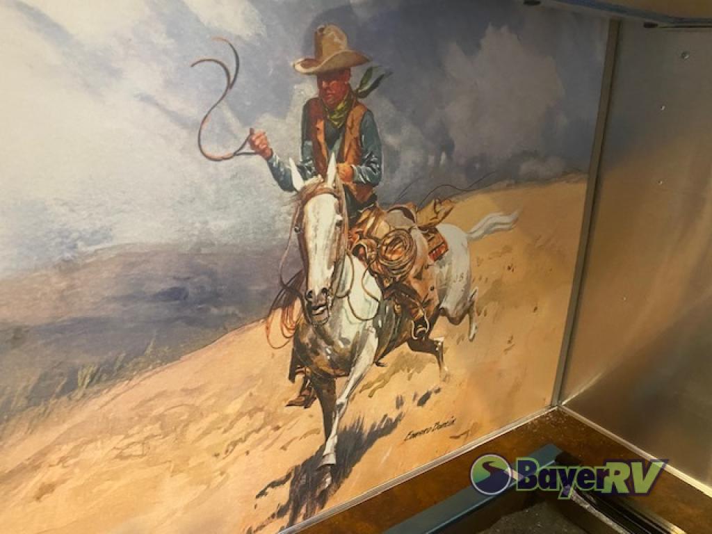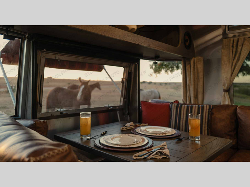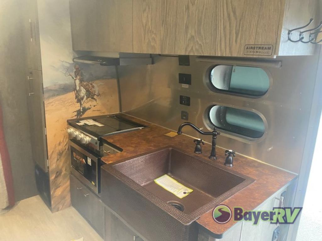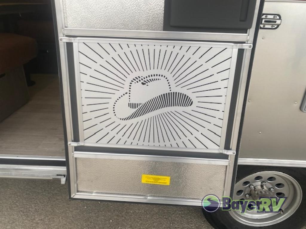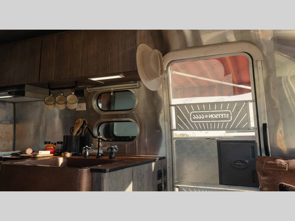 Airstream has collaborated with the hatmakers of Stetson and the Four Sixes Ranch in Texas to bring you the Stetson + 6666 Special Edition travel trailer! You will find Western heritage and modern luxury throughout with genuine leather, convenient hat racks, premium finishes, and handcrafted cabinetry. You will love the rear hatch that opens to give you fresh air and wide-open views of the pasture, and there is a sliding pull-down screen to keep bugs out in the evening. The galley and lounge walls feature custom laminate artwork drawn from Stetson's archive, and the leather cabinet hardware adds subtle Western style you are sure to enjoy. Outside, you'll find a 300-watt solar charging system, a backup camera, insulated and heated tanks, and a SmartPlug 50 Amp power cord to name just a few conveniences!