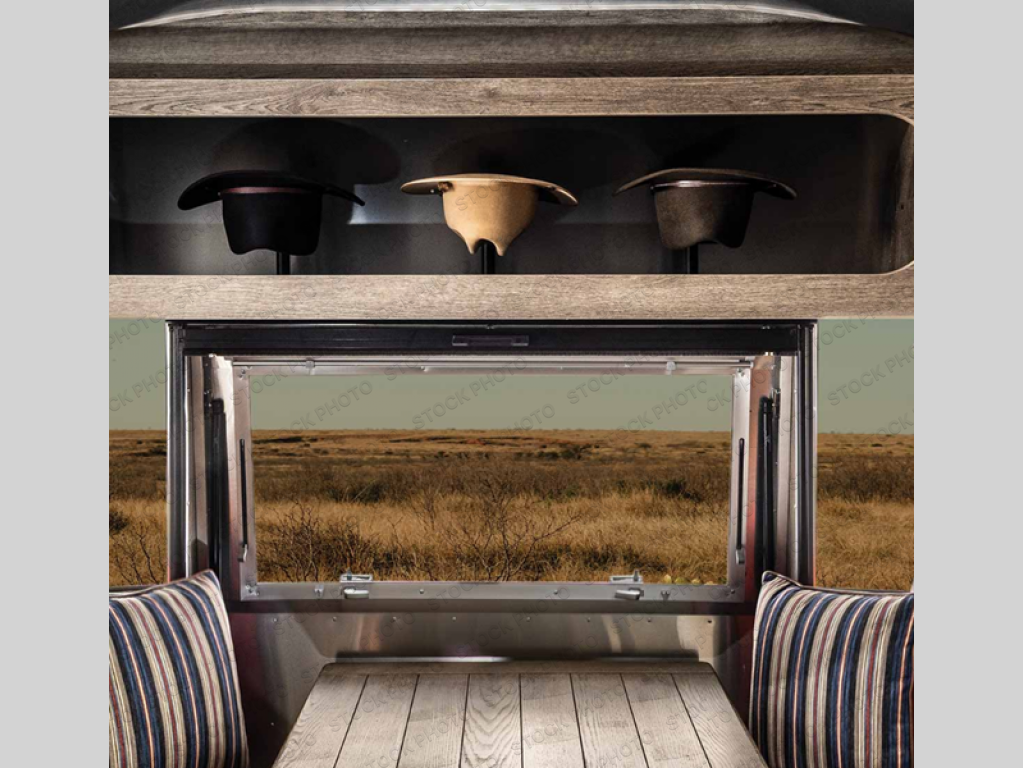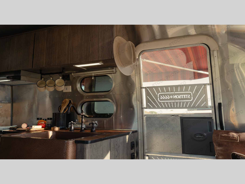 Airstream has collaborated with the hatmakers of Stetson and the Four Sixes Ranch in Texas to bring you the Stetson + 6666 Special Edition travel trailer! You will find Western heritage and modern luxury throughout with genuine leather, convenient hat racks, premium finishes, and handcrafted cabinetry. You will love the rear hatch that opens to give you fresh air and wide-open views of the pasture, and there is a sliding pull-down screen to keep bugs out in the evening. The galley and lounge walls feature custom laminate artwork drawn from Stetson's archive, and the leather cabinet hardware adds subtle Western style you are sure to enjoy. Outside, you'll find a 300-watt solar charging system, a backup camera, insulated and heated tanks, and a SmartPlug 50 Amp power cord to name just a few conveniences!