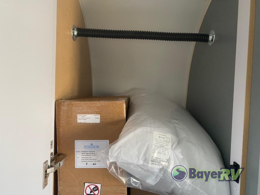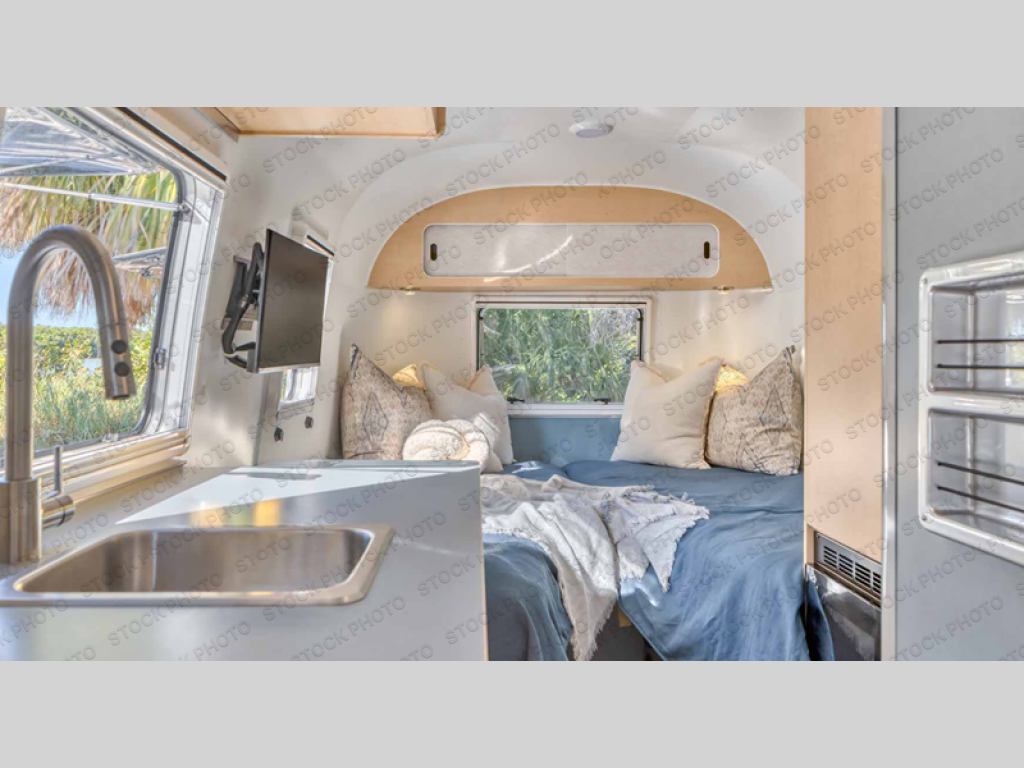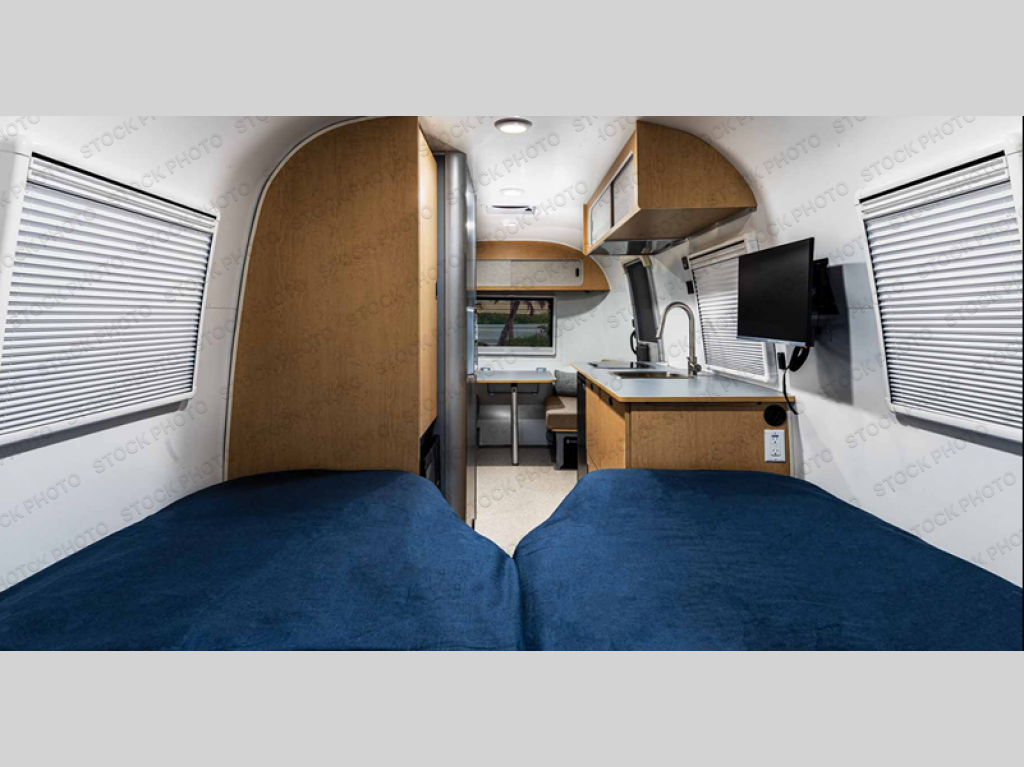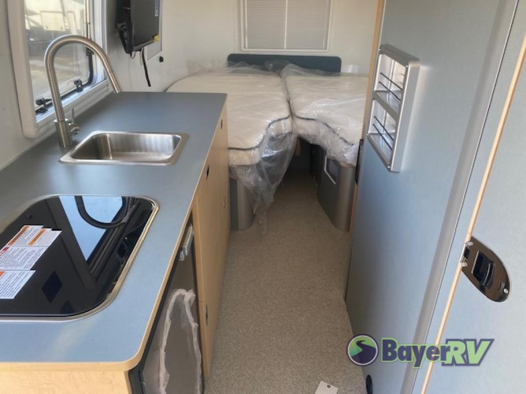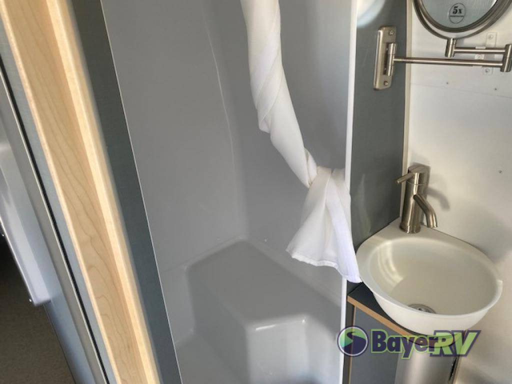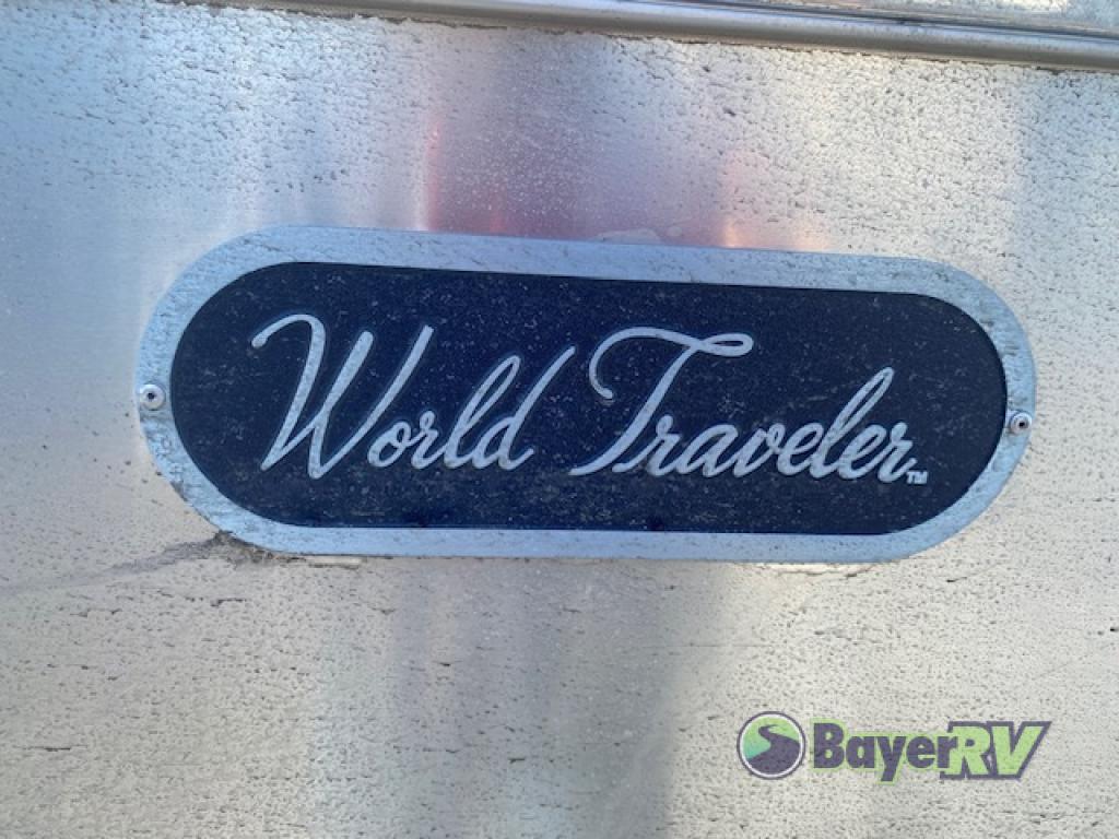 The World Traveler travel trailer by Airstream is your ticket to adventure both near and far! You will enjoy Airstream's timeless design with an aluminum exterior skin, a seamless white aluminum roof, and a semi-monocoque molded fiberglass superstructure for added durability. There are dual-pane acrylic windows outside, along with LED taillights, insulated and heated tanks, plus an exterior shower with hot and cold water. Inside, you'll love the custom wood cabinetry with drawer slides, complete white aluminum walls and ceiling, and laminate galley countertop. There is a JBL Audio stereo with Bluetooth and two speakers so you can listen to your favorite tunes as you camp, and the optional solar charging system gives you the ability to go off grid if the adventure calls it.