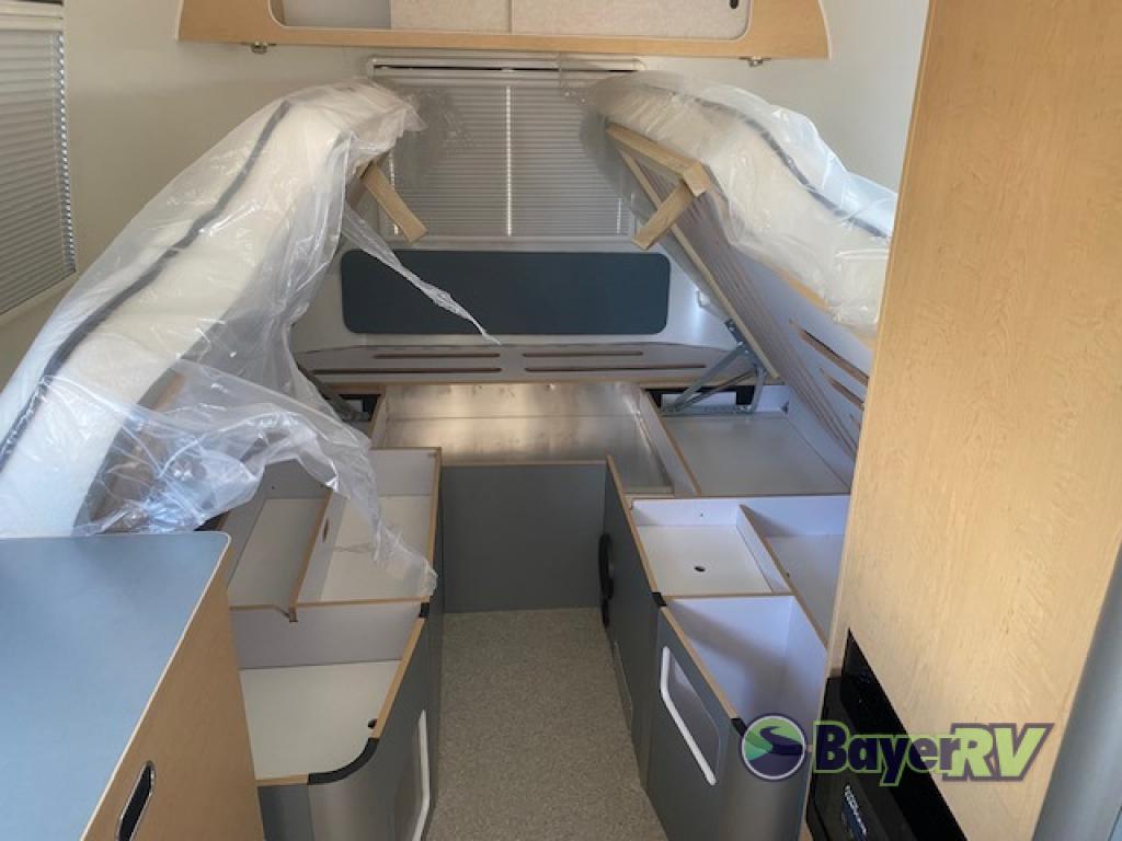 Adventure awaits in this travel trailer for four campers! Once you arrive at your destination, you can make a quick lunch in the kitchen, then dine at the convertible dinette. The middle bath includes everything you need to freshen up each day, and the wardrobe between the bath and rear beds will help you keep your things tidy. The V-nose twin beds include a memory foam mattress for added comfort, plus there is storage under the bed to store your bags away.