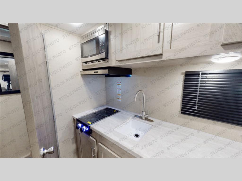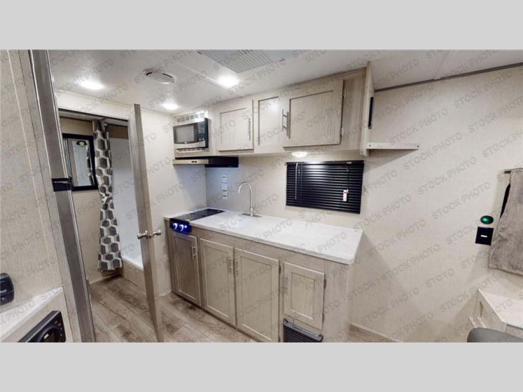 Camping for two, anyone? This cute Catalina Summit Series 7 is the perfect camper that provides you with both a living space and a sleeping space all while keeping it under 20'. This unit comes in at 19' 6" to be exact, and with the 60" x 74" Murphy bed layout you can have both a comfortable place to sleep at night, and during the day it's all tucked away behind a wall and a sofa sits in its place. You don't even have to make the bed! A rear bath offers a 36" x 30" shower, toilet, and linen cabinet for your towels and toiletries. The sink is just outside the bathroom door on your left. For cooking inside, you will have a two burner cooktop and a microwave oven, plus plenty of solid surface countertop prep space. On the outside, a 10' power awning with multicolored LED light strip will make a wonderful outdoor living space to enjoy both during the day and at night keeping you protected from the elements. And, the large front pass-through storage space allows you to take along all of your necessities to have a great time.