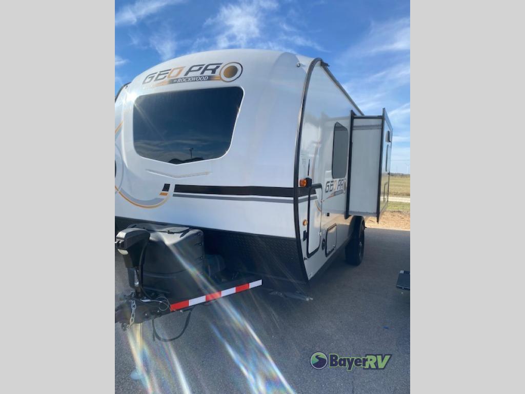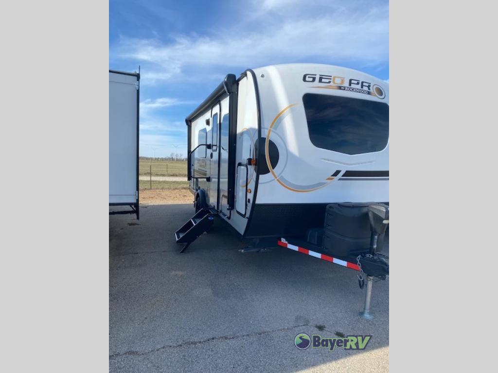 The Rockwood GEO Pro travel trailers and toy hauler by Forest River are ready for all your adventures. The interior and exterior Azdel construction, along with the vacuum laminated roof and walls provide a durable trailer, and the Dexter torsion axles with aluminum wheels make towing easier than ever. There are many convenient amenities, like the 13,500 BTU A/C, the Bluetooth system control panel, and the all-in-one Teton HD TV/WiFi/FM antenna with LTE prep. Each model includes frameless windows, fabric valances and roller shades, and a modern interior that will make you feel right at home. Everything you're looking for in your next RV is in a Rockwood GEO pro by Forest River!